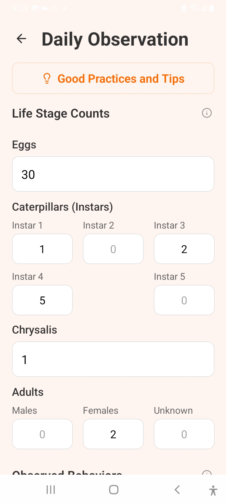 With our app you can not only keep the most detailed records, but also see what milkweed species have the highest success rates, what predators and diseases affect your patch the most. With this information, you can significantly improve the survival rates.