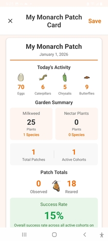 See how your patch and cohorts are doing, which milkweed species has the highest success and much more